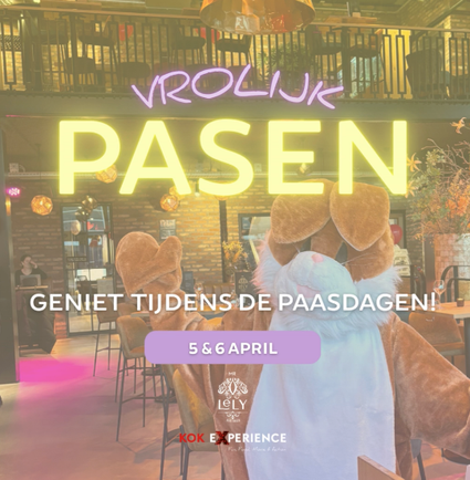 CulinairPasen bij Kok Experience Lelystad op eerste en tweede paasdag (zondag 5 april en maandag 6 april)! De paashaas komt gezellig langs.