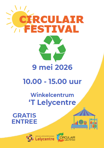 Na twee eerdere succesvolle edities maakt Circulair Lelystad zich op voor het derde Circulair Festival op zaterdag 9 mei van 10.00 tot 15.00 uur in winkelcentrum ‘t Lelycentre. Het gratis event laat zien hoe leuk én belangrijk een circulaire economie is.