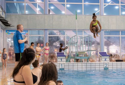 ZwemmenMet één knie omhoog en één been gestrekt het water in. Zo maak je het allerhoogste bommetje. Op Tweede Pinksterdag (maandag 25 mei 2026 van 14.00 t...