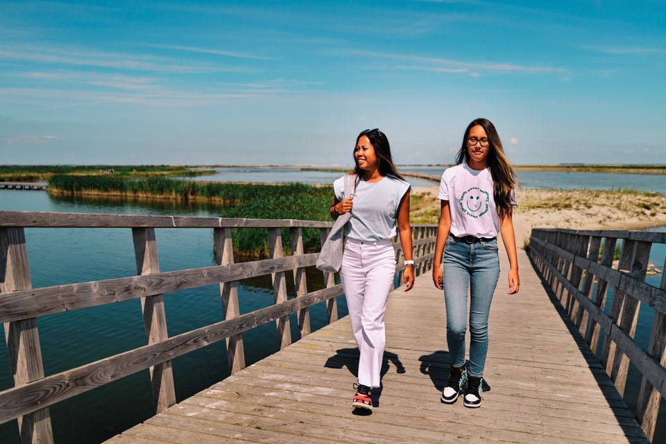 Zacht zand, golven die aankomen rollen... Ben je aan de kust? Nee. Je bent op het Noordstrand op de Marker Wadden.