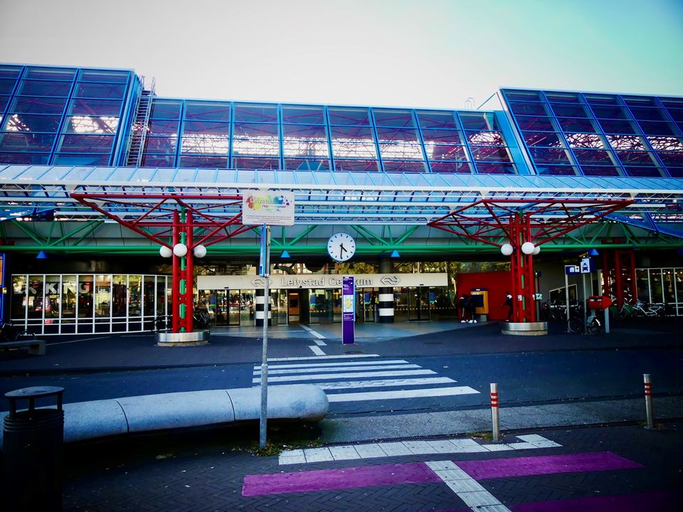 We beginnen bij het beeld “Symbool van de Gastvrijheid” van André Volten op het Stationsplein. Hier heb je zicht op station Lelystad, een mooi voorbeeld van High Tech-architectuur. Tegenover ligt het stadhuis, een toonbeeld van neo-modernisme.